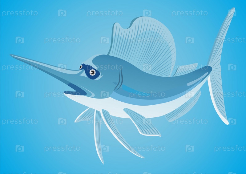Рыба-меч на голубом фоне