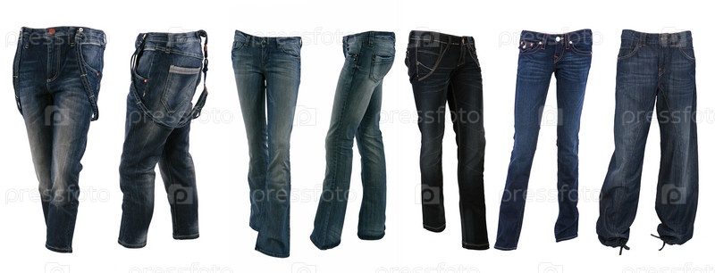 Коллекция различных видов синих джинсовых брюк