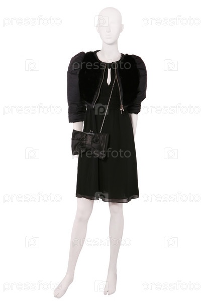 Манекен, одетый в жакет и черное платье