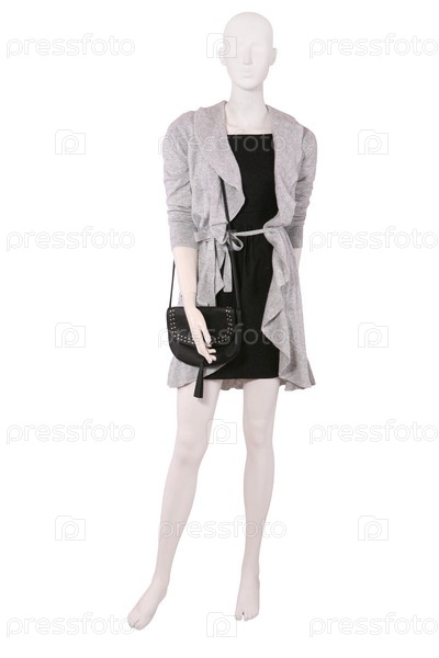 Манекен, одетый в кардиган и маленькое черное платье
