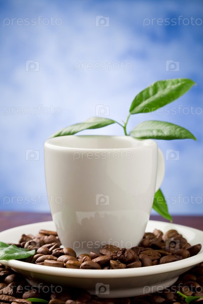 Эспрессо с зелеными листьями