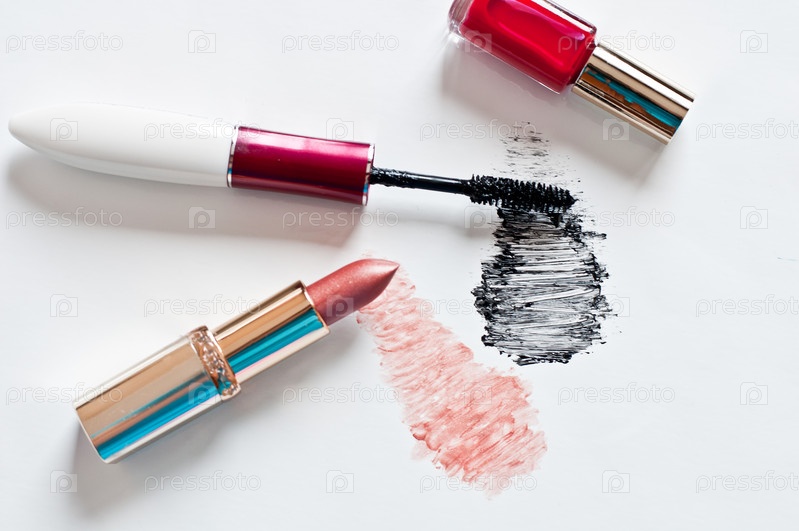 Женская косметика на светлом фоне