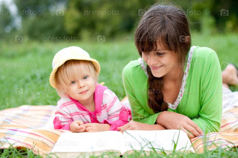 Две сестры, читающие книгу на свежем воздухе