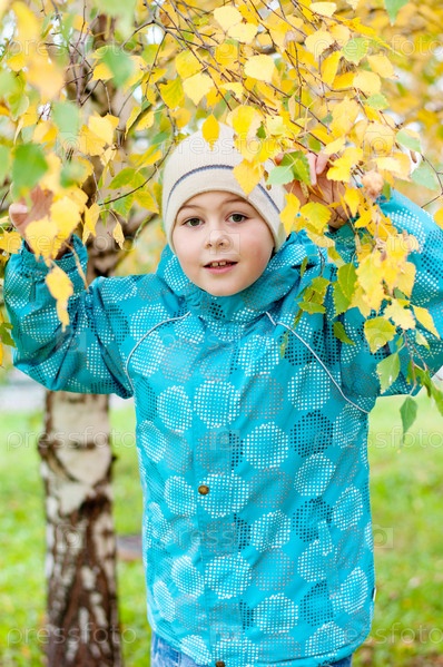 Мальчик в березовом лесу осенью
