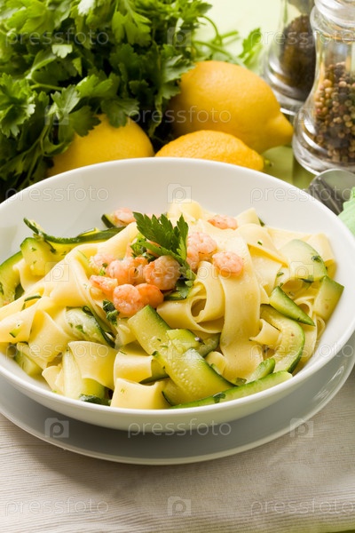 Паста с креветками и цукини