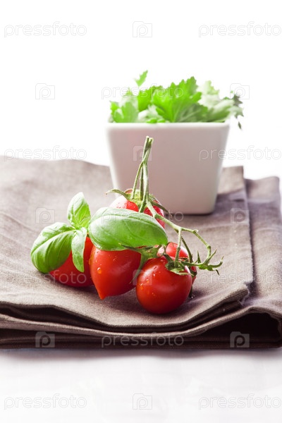 Помидоры и петрушка на салфетке