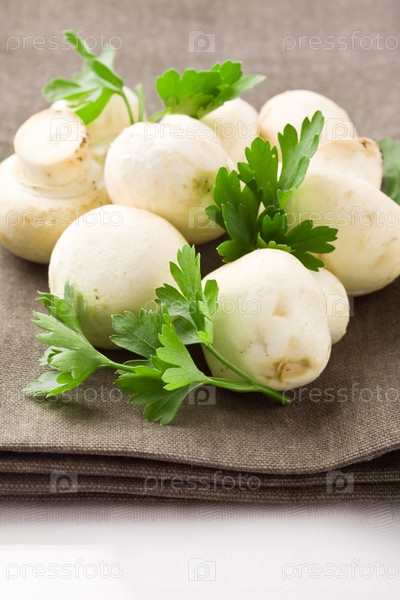 Грибы с петрушкой на салфетке