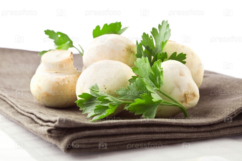 Грибы с петрушкой на салфетке