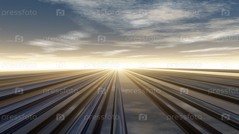 Металлические трубопроводы под облачным небом. 3d иллюстрация