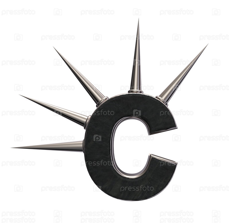 Буква c с металлическими шипами на белом фоне. 3d иллюстрация
