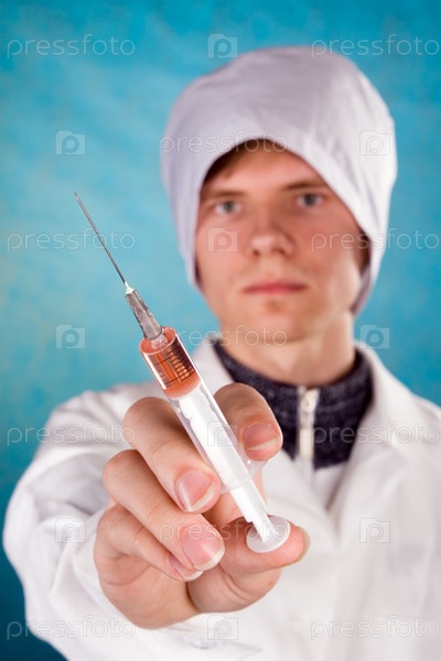Медицинский работник со шприцем в руке