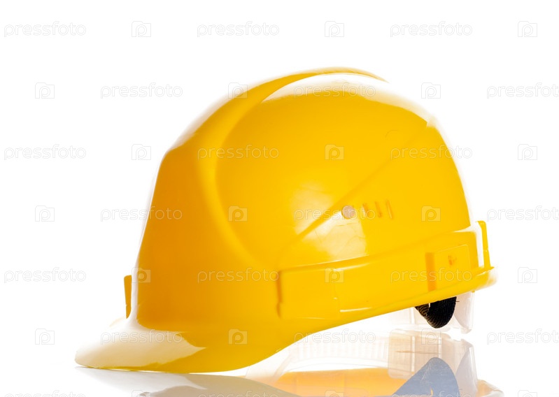Желтая каска на белом фоне