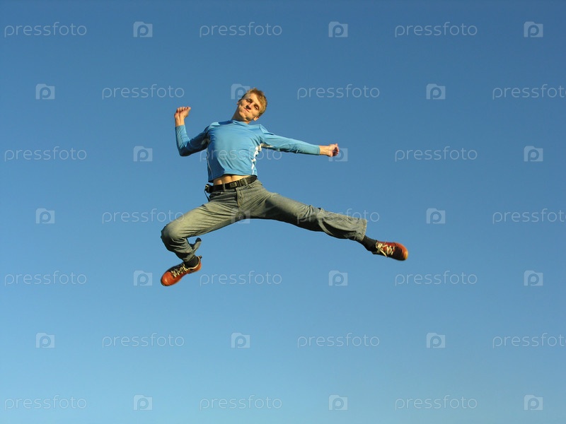 Человек летает по голубому небу