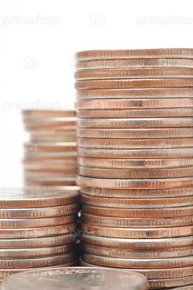 Стопки монет на белом фоне