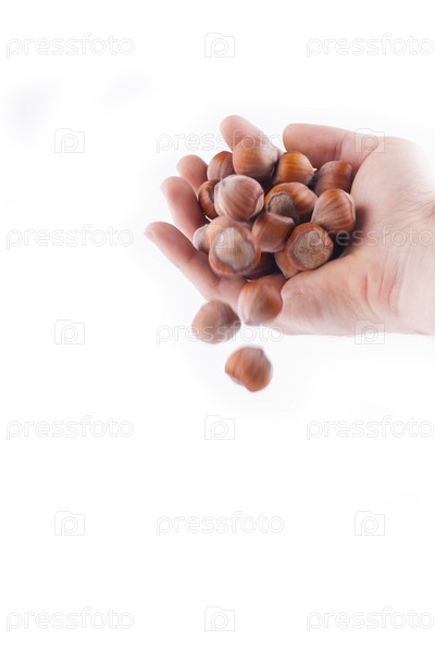 Фундук высыпается из руки