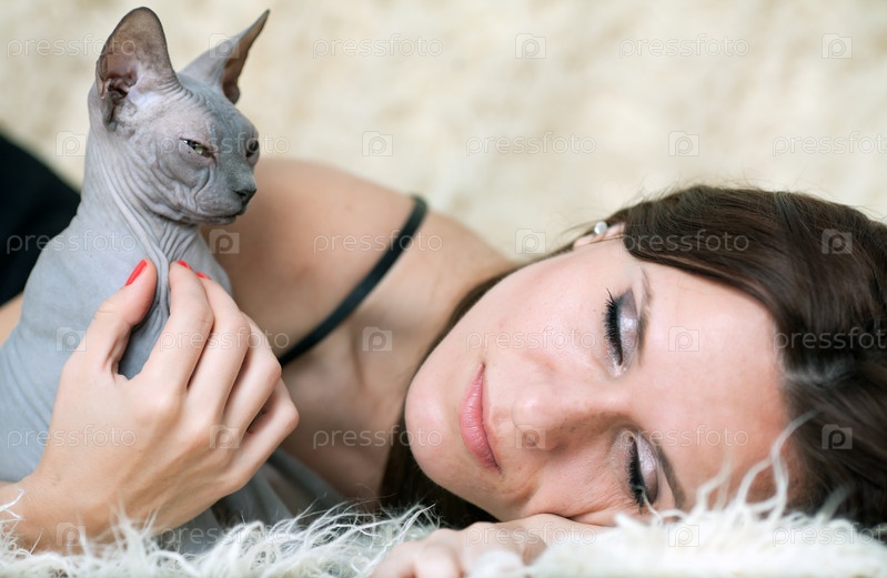 Темноволосая женщина и кошка