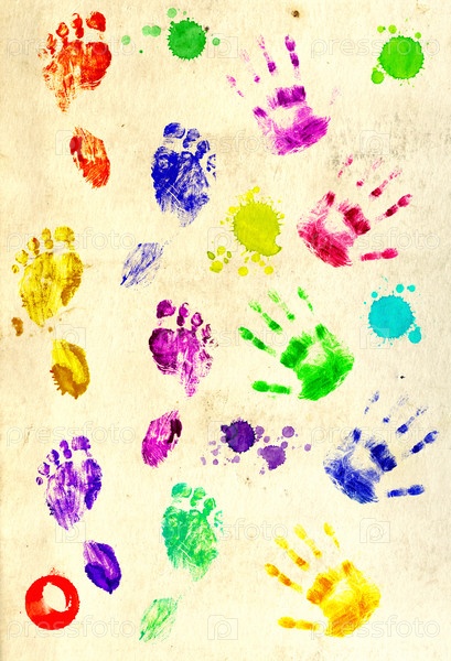 Разноцветные отпечатки рук и ног
