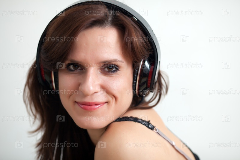 Красивая молодая женщина в наушниках