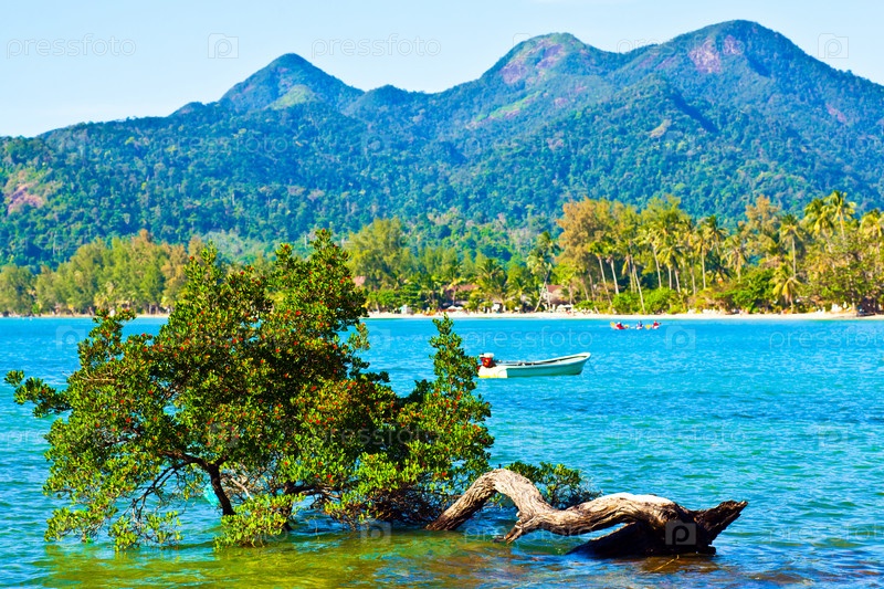 Зеленое дерево в море, Таиланд