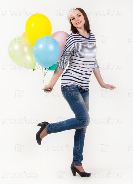 Милая брюнетка в парижском стиле с воздушными шарами