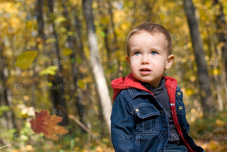 Милый мальчик и падающие листья