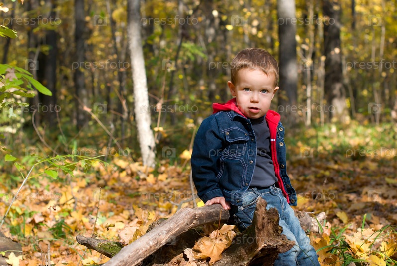 Милый мальчик и осенний лес