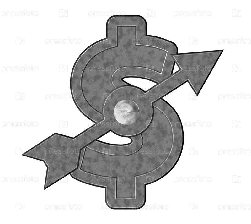 Металлический символ доллара с стрелкой - 3d иллюстрация