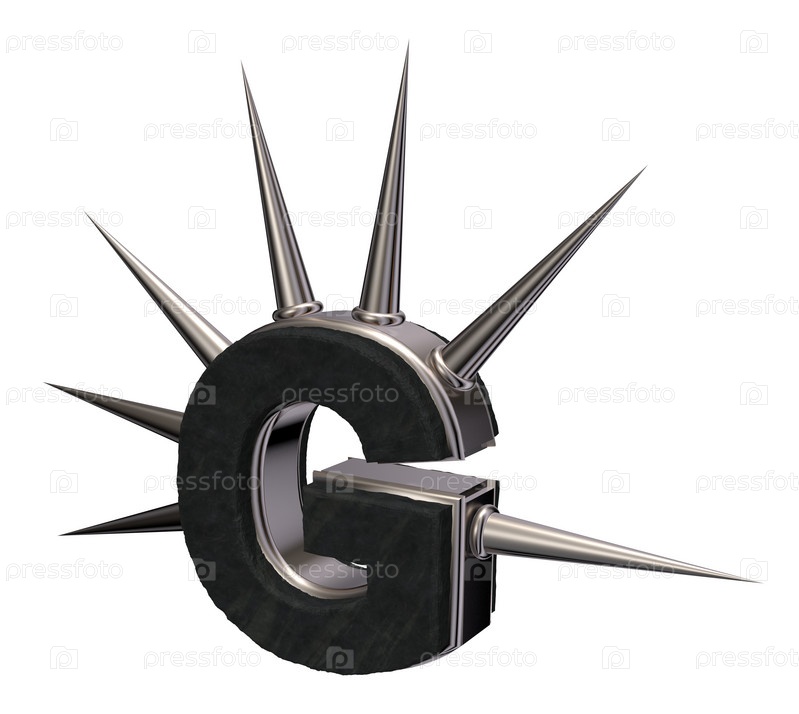 Буква g с металлическими шипами на белом фоне - 3d иллюстрация