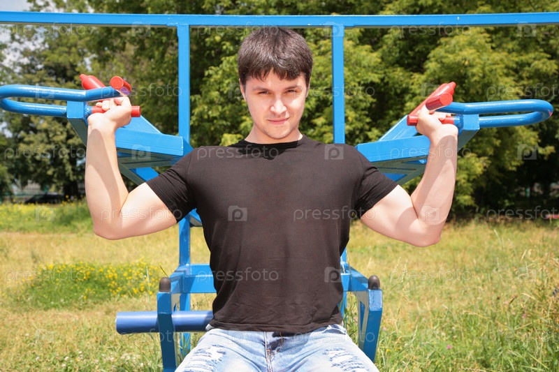 Молодой человек занимается спортом