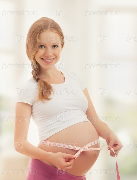 Беременная женщина измеряет живот сантиметром