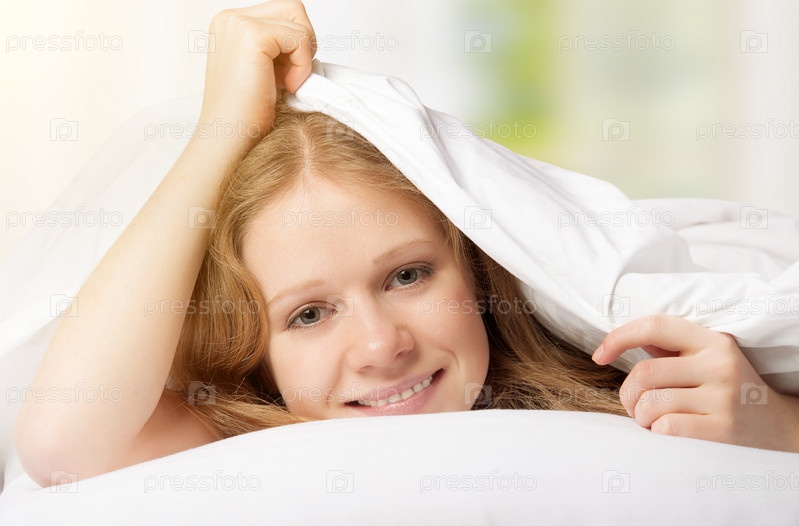 Красивая молодая блондинка под одеялом