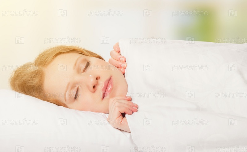 Красивая женщина спит в чистой белой кровати
