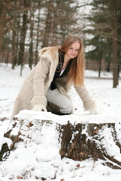 Блондинка в снежном лесу