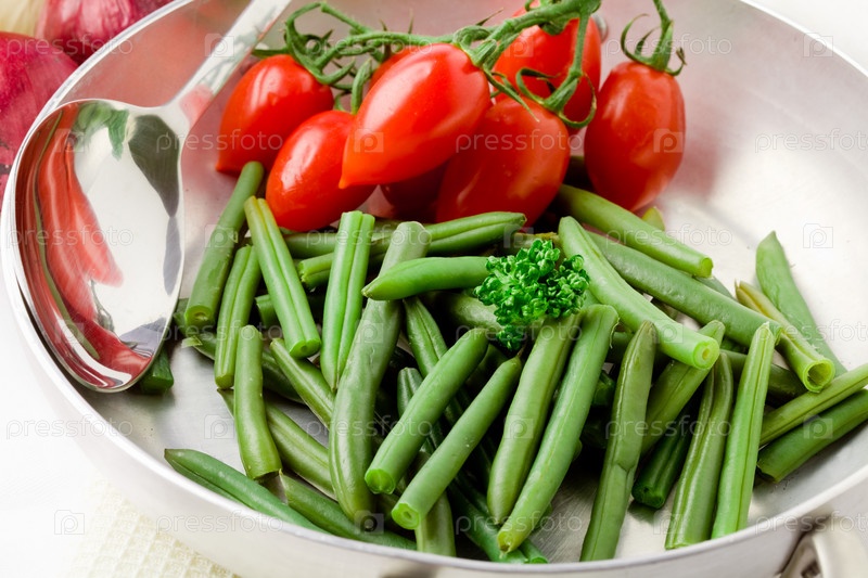 Зеленая французская фасоль в сковороде