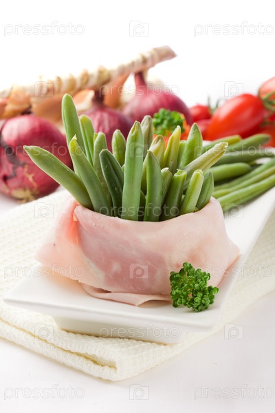 Французская фасоль, завернутая в ветчину