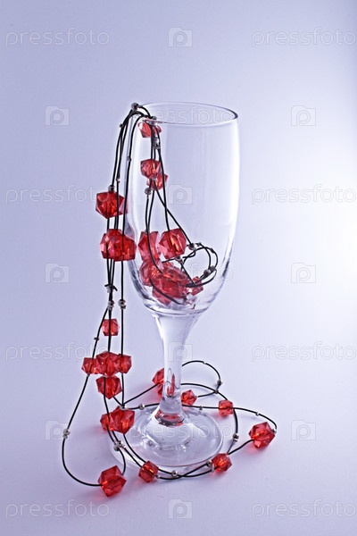 Бокал с красными бусами