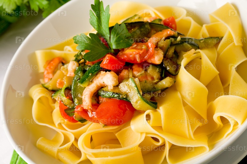 Макароны с креветками и цуккини