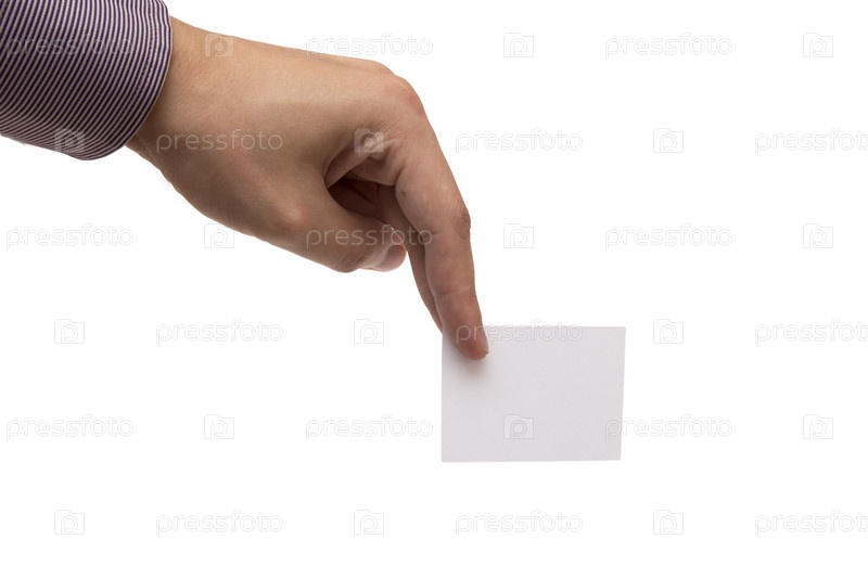 Мужская рука с белой визитной карточкой