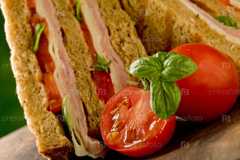 Вкусный бутерброд на деревянном столе