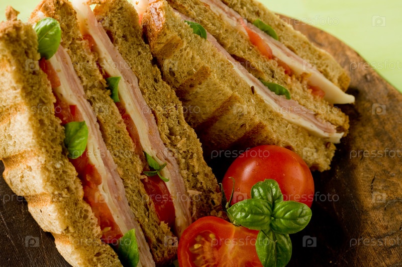 Вкусный бутерброд на деревянном столе