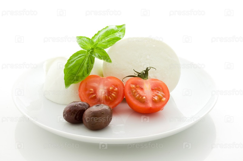 Закуска из томата и моцареллы, изолированная на белом фоне