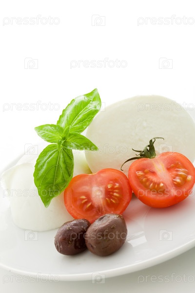 Закуска из томата и моцареллы, изолированная на белом фоне