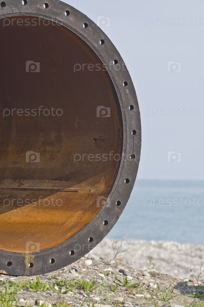 Труба большого диаметра на фоне моря и неба