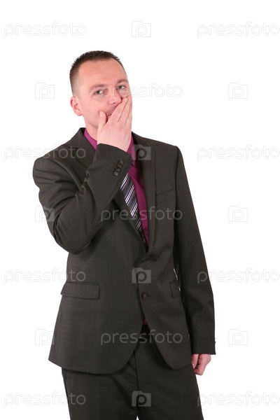 Молодой предприниматель, закрывающий рот рукой