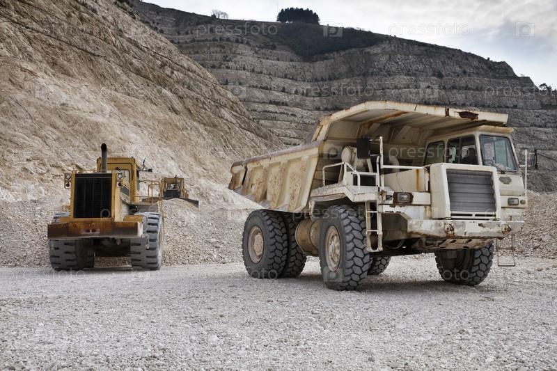 Италия, Маддалони (Неаполь), каменный карьер с промышленным транспортом в работе