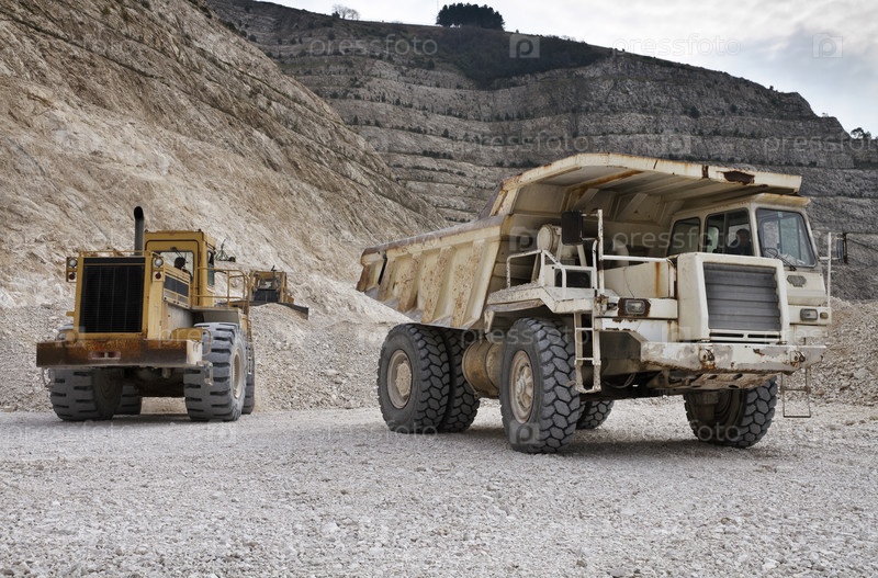 Италия, Маддалони (Неаполь), каменный карьер с промышленным транспортом в работе