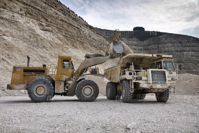 Италия, Маддалони (Неаполь), каменный карьер с промышленным транспортом в работе