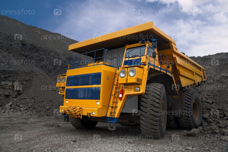 Большой желтый карьерный самосвал на рабочем месте