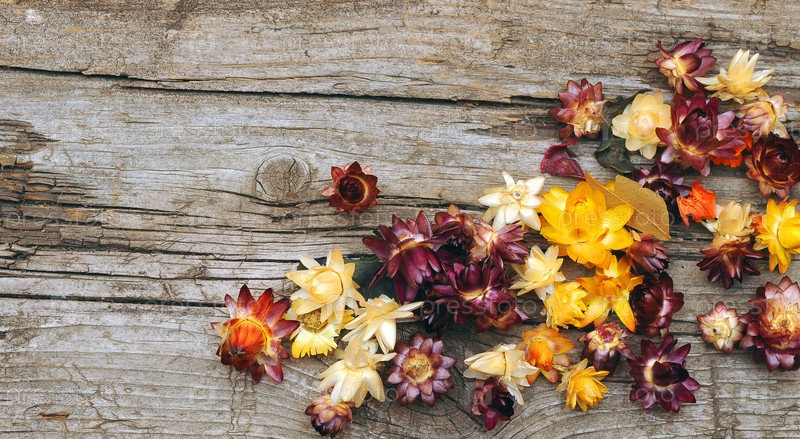 Цветы бессмертника на старом деревянном фоне