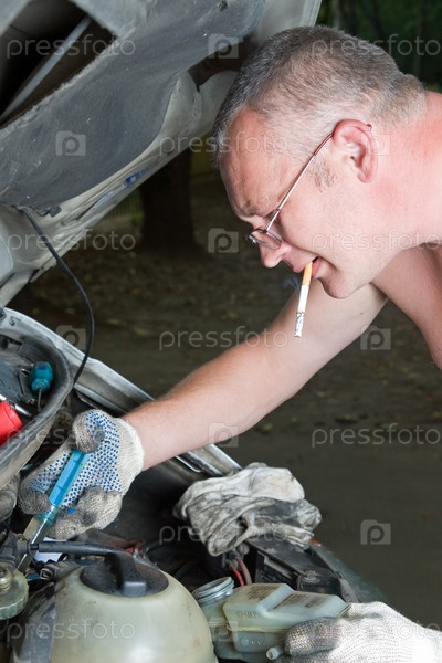 Мужчина ремонтирует машину